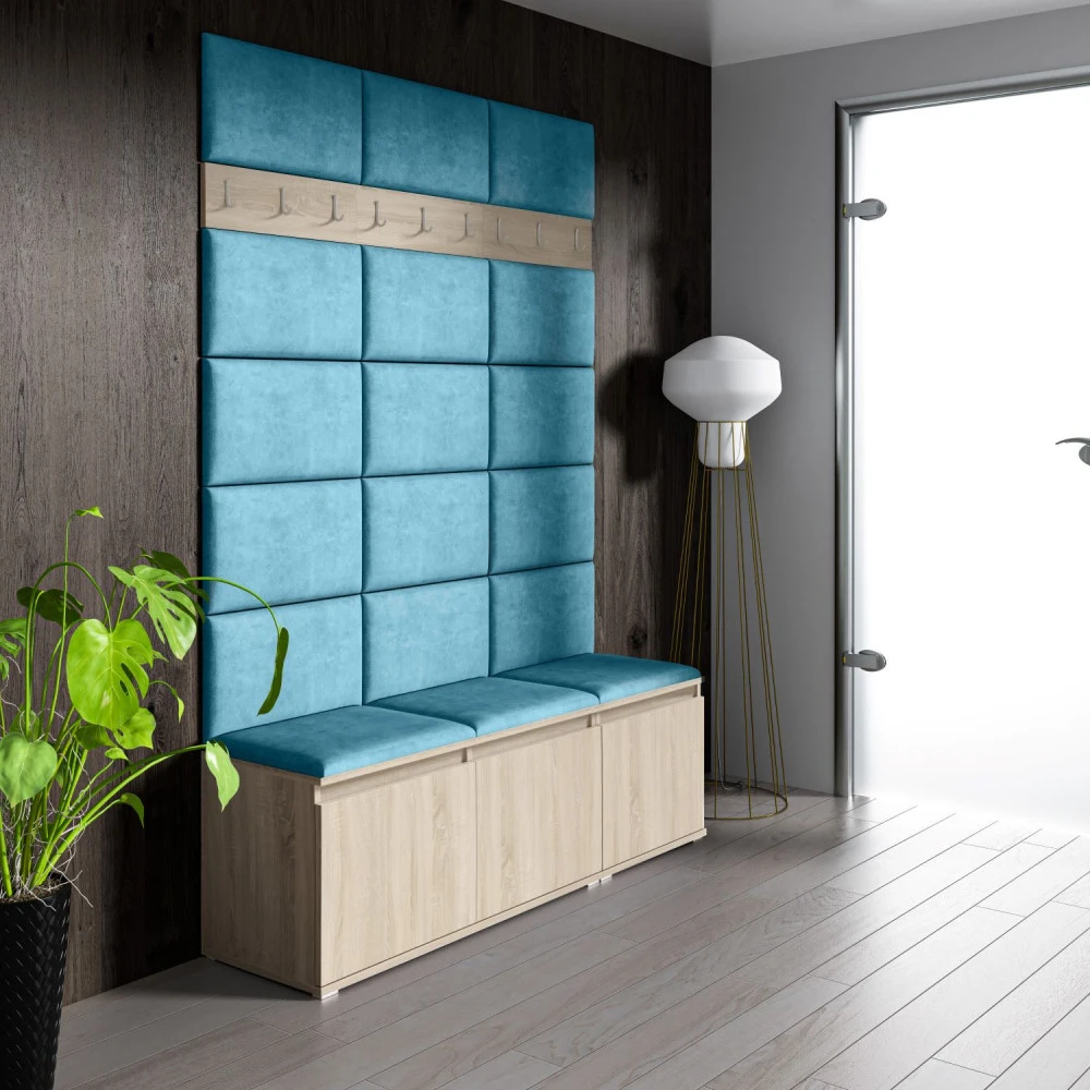 Čalouněná předsíň EMI 6 s barevnými panely je ideální volbou pro ty, kteří hledají originální a funkční řešení.Představujeme vám čalouněnou předsíň EMI, která kombinuje moderní design, praktické využití a jedinečnou estetiku. Čalouněné panely v různých barvách jsou nejen vizuálně atraktivní, ale také přinášejí pohodlí a funkčnost, díky kterým bude vaše předsíň působit útulně a stylově zároveň.Čalouněné panely EMI jsou vyrobeny z odolných materiálů, které zajišťují dlouhou životnost i snadnou údržbu. Povrchy odolné vůči nečistotám a vlhkosti jsou praktické zejména v předsíních, které jsou každodenně zatěžované.