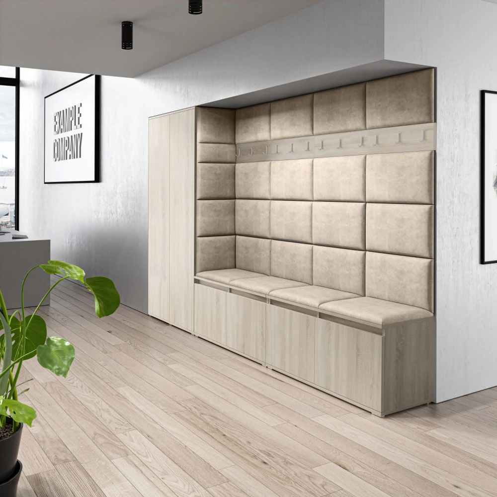 Čalouněné panely se montují přímo na stěnu a šatní