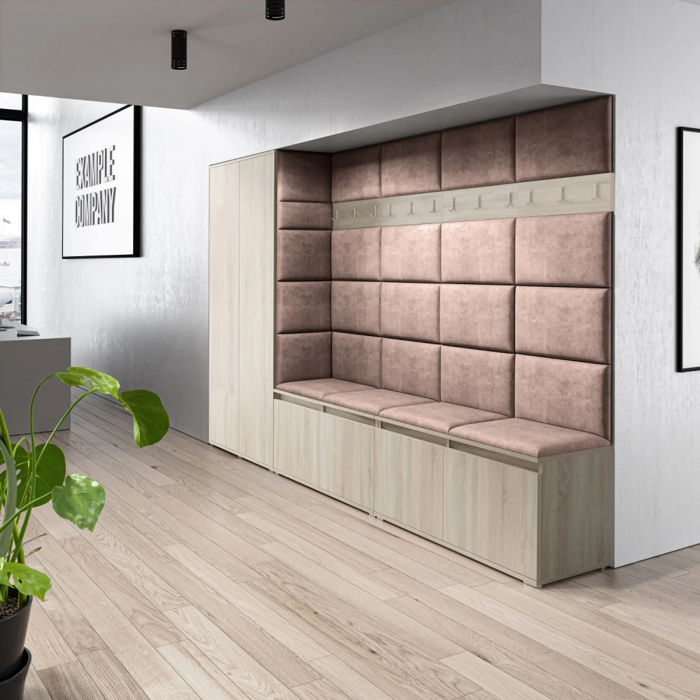 Čalouněná předsíň EMI 9 s barevnými panely je ideální volbou pro ty, kteří hledají originální a funkční řešení.Představujeme vám čalouněnou předsíň EMI, která kombinuje moderní design, praktické využití a jedinečnou estetiku. Čalouněné panely v různých barvách jsou nejen vizuálně atraktivní, ale také přinášejí pohodlí a funkčnost, díky kterým bude vaše předsíň působit útulně a stylově zároveň.Čalouněné panely EMI jsou vyrobeny z odolných materiálů, které zajišťují dlouhou životnost i snadnou údržbu. Povrchy odolné vůči nečistotám a vlhkosti jsou praktické zejména v předsíních, které jsou každodenně zatěžované. Stěnu si můžete umístit v pravo nebo v levo, taktéž si můžete sami zvolit kam dáte dvířka se zrcadlem.
