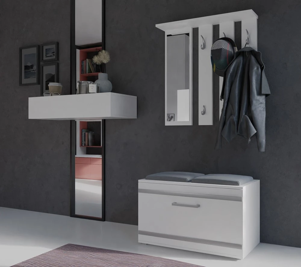 Moderní nábytek ve skandinávském stylu splní očekávání všech, kteří oceňují kombinaci jednoduchosti a elegance. Předsíňová sestava Granát je ideálním řešením pro stylové a funkční interiéry jako jsou malé kancelářské prostory a chodby. Nábytek je vyroben z vysoce kvalitního lamina, které je snadno udržovatelné a odolné proti oděru, dlouhou životnost nábytku zajišťují hrany zakončené odolným ABS materiálem.