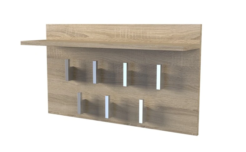 Praktický nástěnný věšák Modis 2F je ideálním řešením pro každou předsíň – ať už malou, nebo prostornou. Sedm pevných háčků a odkládací police zajistí dostatek místa pro kabáty, tašky i doplňky. Díky kvalitnímu zpracování a nadčasovému designu se věšák hodí do jakéhokoli interiéru. Nábytek je vyroben z kvalitního lamina, které je snadno udržovatelné a odolné proti oděru, dlouhou životnost zajišťují hrany povrchově upravené ABS materiálem.