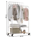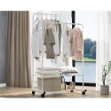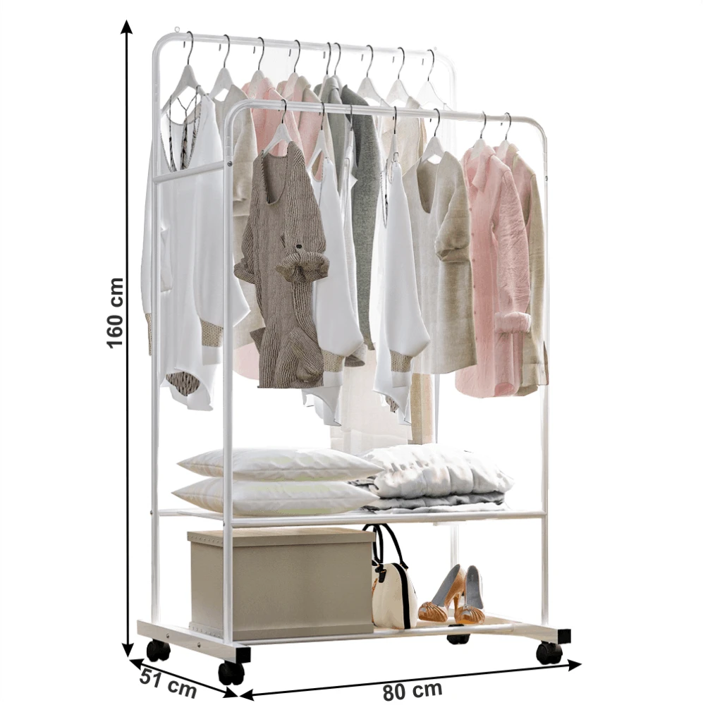 Dvouřadý pojízdný věšák, s policemi, bílá, RAINER