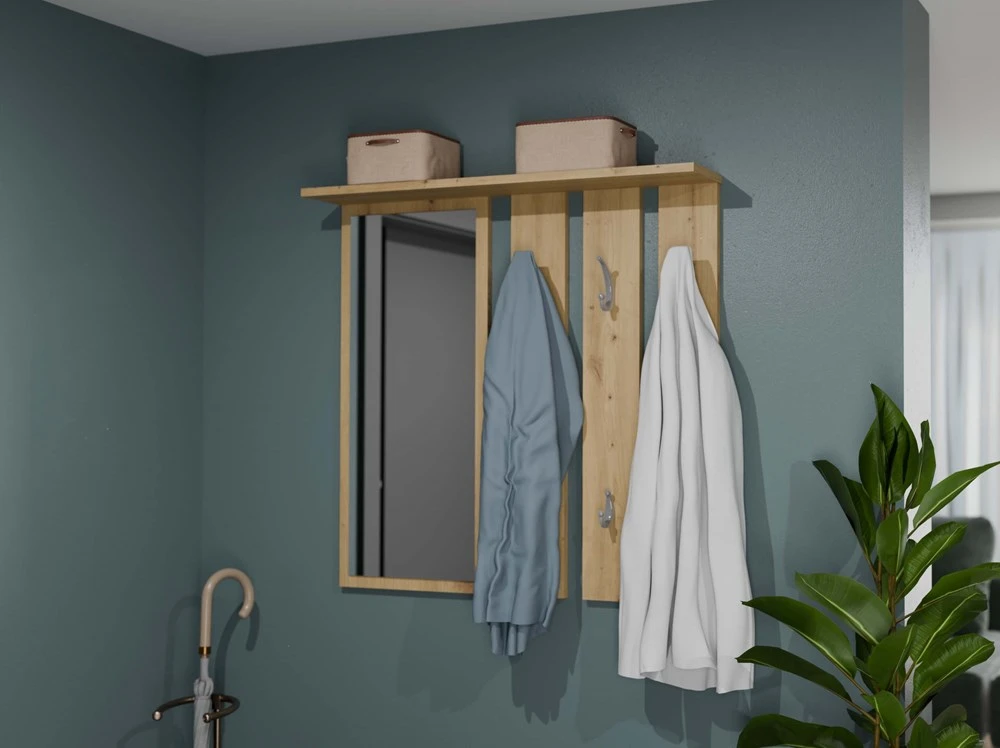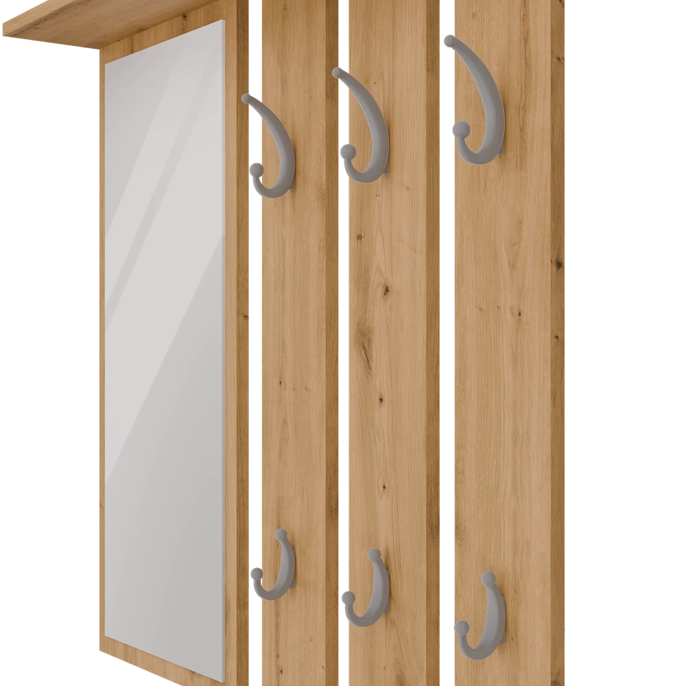 Stylový věšák se zrcadlem Granát je ideálním řešením pro ty, kteří ocení kombinaci jednoduchosti a elegance. Nábytek je vyroben z vysoce kvalitního lamina, které je snadno udržovatelné a odolné proti oděru, dlouhou životnost nábytku zajišťují hrany zakončené odolným ABS materiálem.