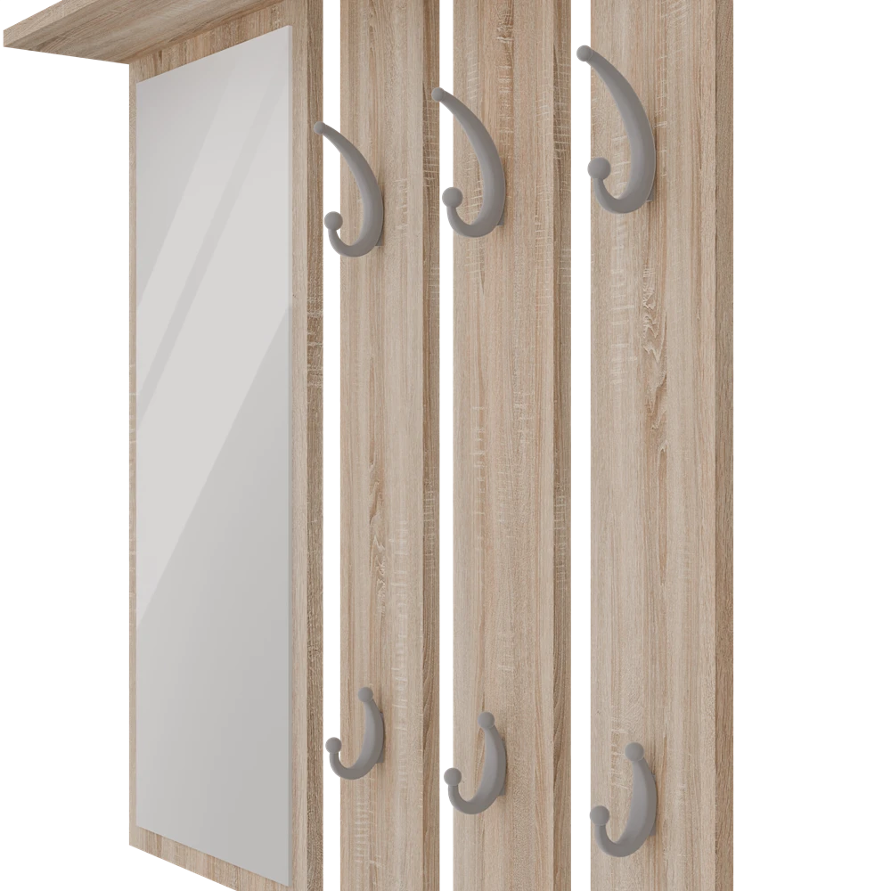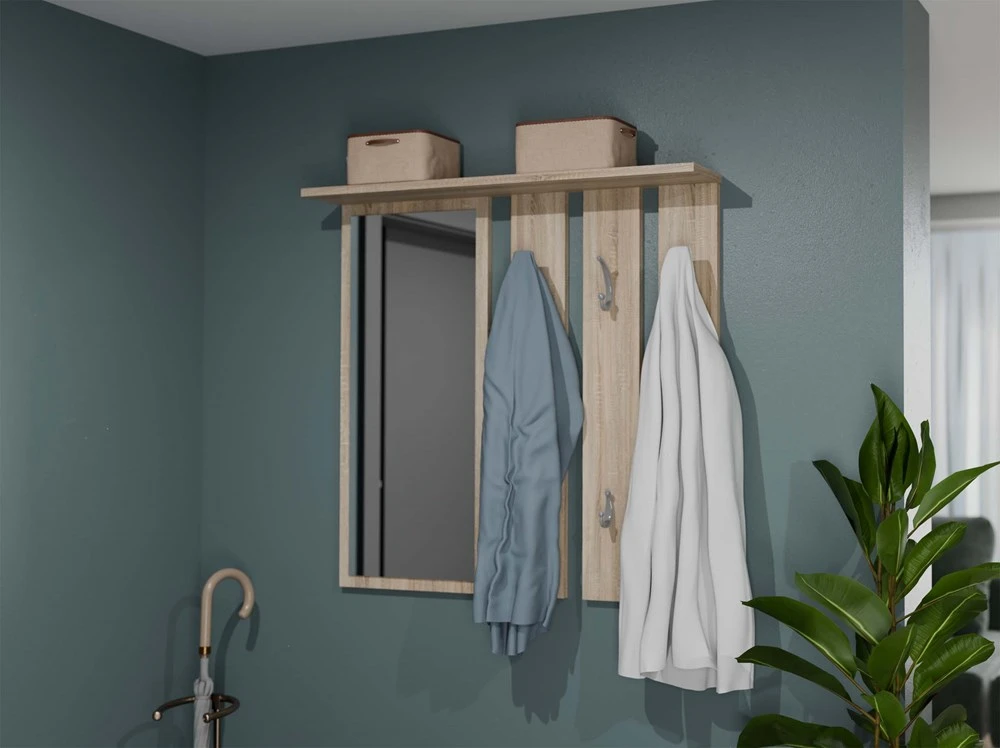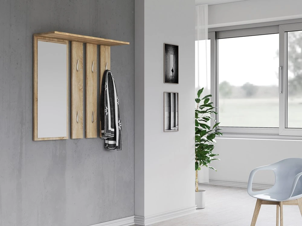 Stylový věšák se zrcadlem Granát je ideálním řešením pro ty, kteří ocení kombinaci jednoduchosti a elegance. Nábytek je vyroben z vysoce kvalitního lamina, které je snadno udržovatelné a odolné proti oděru, dlouhou životnost nábytku zajišťují hrany zakončené odolným ABS materiálem.