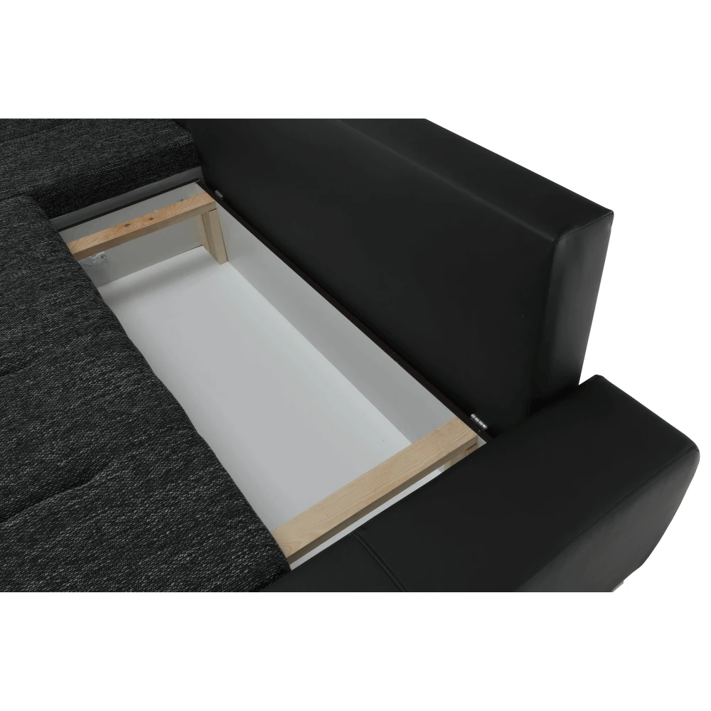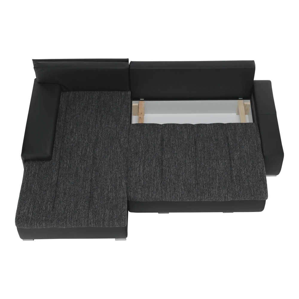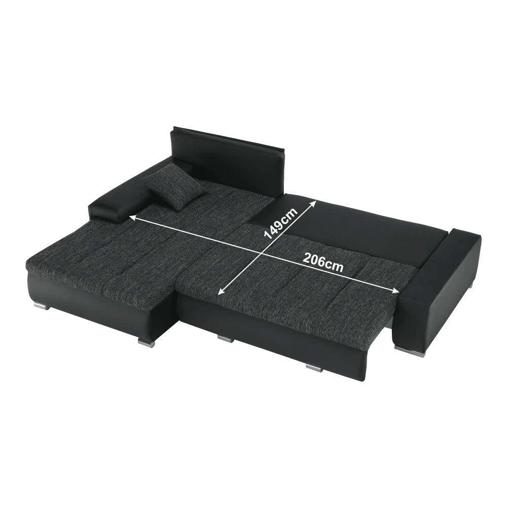 Univerzální rohová rozkládací sedací souprava – moderní černý design, vysoká odolnost a praktické funkce