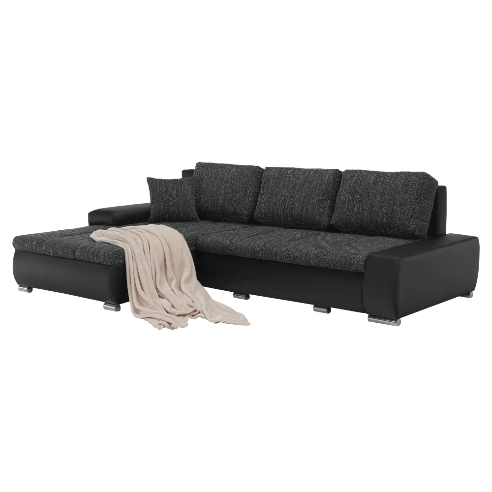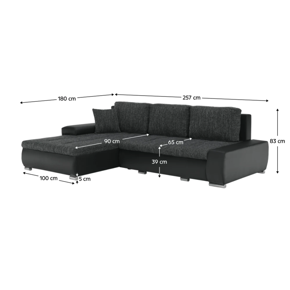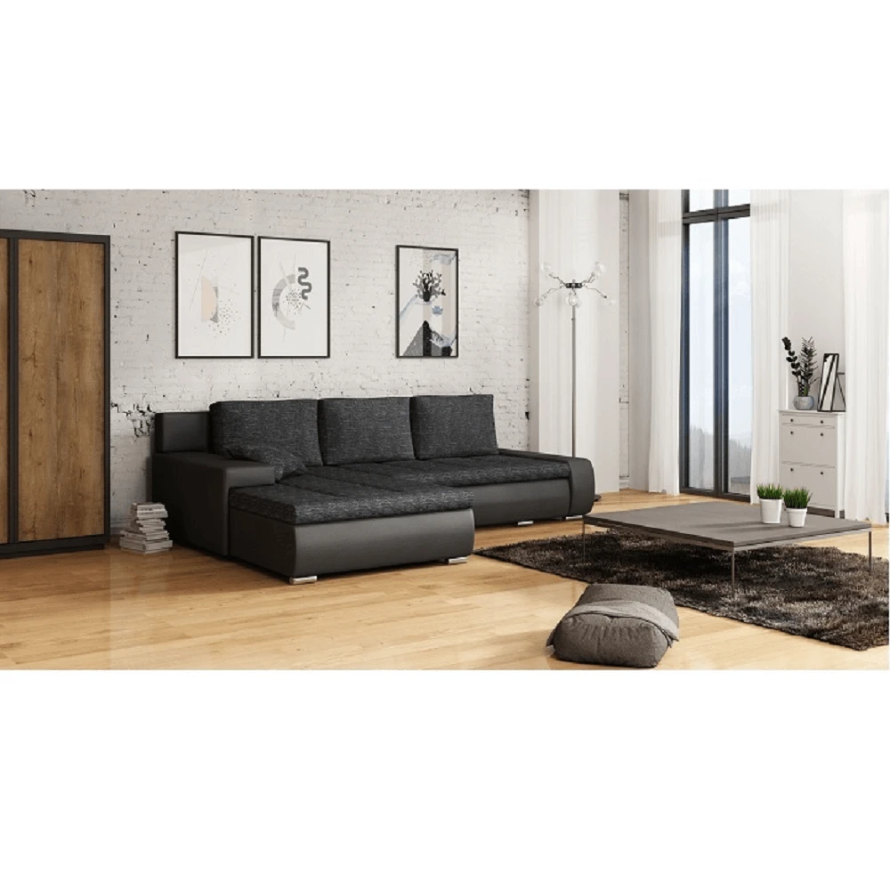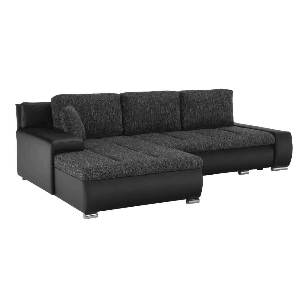 Univerzální rohová rozkládací sedací souprava – moderní černý design, vysoká odolnost a praktické funkce