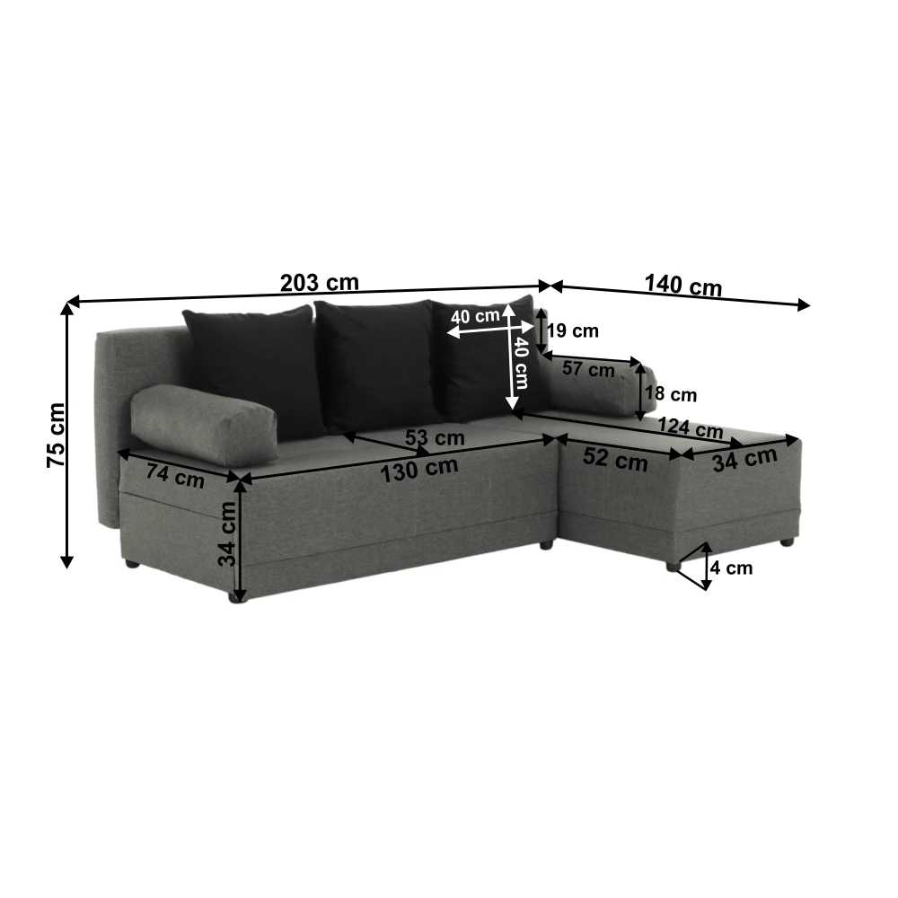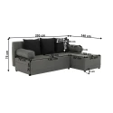 Tato rohová sedací souprava v pravém provedení přináší ideální spojení moderního vzhledu, pohodlného sezení a praktických funkcí. Kombinace šedé a černé barvy dodává sedačce nadčasový styl, který skvěle zapadne do moderních i minimalistických interiérů. Díky kompaktním rozměrům je perfektní volbou do bytů, menších obývacích pokojů či pokojů pro hosty.