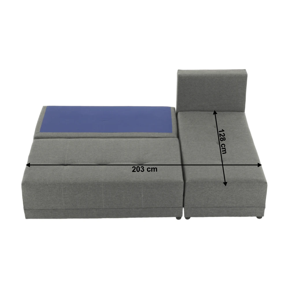 - Rozkládací mechanismus, který vytvoří spací plochu 127 × 203 cm, ideální pro občasné spaní či návštěvy.