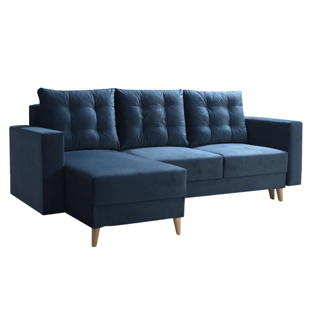 Rohová sedací souprava Kronos – stylová modrá elegance s praktickými funkcemi