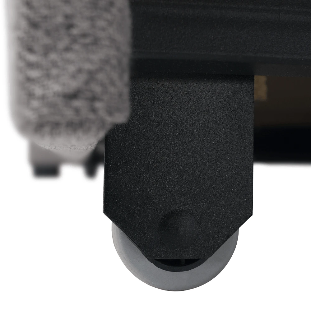 Sedačka stojí na stříbrných plastových nožičkách, které dodávají moderní vzhled a zároveň usnadňují úklid pod ní.