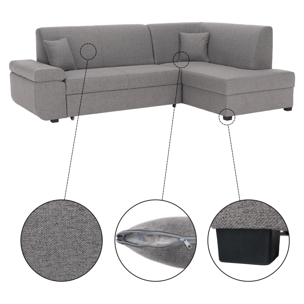 Tato rohová sedačka v pravém provedení poskytuje dostatek prostoru pro relaxaci, pohodlné sezení a navíc umožňuje jednoduché rozložení na lůžko. Díky moderním liniím a nadčasové barvě se skvěle hodí do všech typů interiérů.