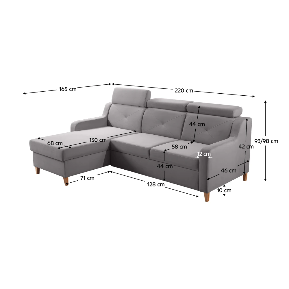 Praktické provedení doplňuje rozkládací funkce, velkorysý úložný prostor a polohovací opěrky hlavy, které umožní přizpůsobit si pohodlí přesně podle vašich potřeb. Sedací souprava poskytuje ideální místo pro odpočinek, rodinné posezení i příležitostné přespání.