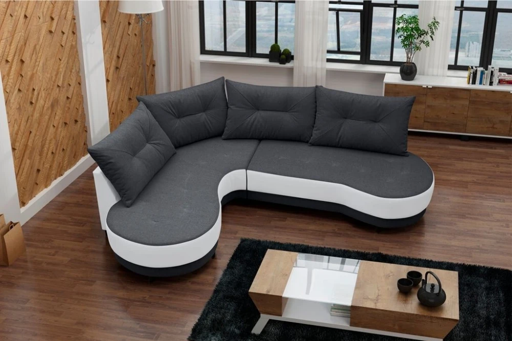 Rohová sedací souprava Abbey zaujme svým neobvyklým, zaobleným tvarem, díky němuž se výrazně odlišuje od klasických i moderních modelů. Tento jedinečný design působí elegantně, jemně a dodává interiéru originální charakter. Abbey nabízí velmi pohodlné sezení, takže se stane nejen stylovou dominantou pokoje, ale také příjemným místem pro každodenní relaxaci.