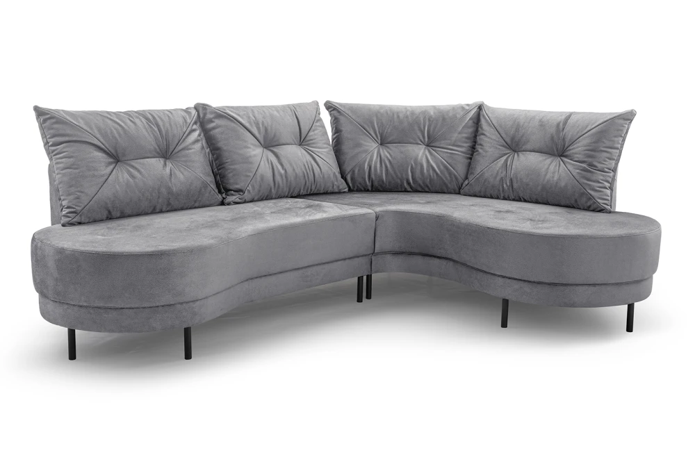 Rohová sedací souprava Abbey zaujme svým neobvyklým, zaobleným tvarem, díky kterému se na první pohled odlišuje od klasických i moderních sedaček. Její jemné, plynulé linie působí velmi elegantně a nadčasově, takže se stane skutečnou ozdobou každého interiéru. Současně poskytuje komfortní sezení, které oceníte při každodenní relaxaci i posezení s rodinou.