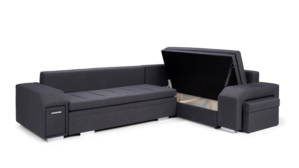 Sedací souprava Alana v sobě spojuje 2 důležité prvky, které nesmí chybět žádné sedací soupravě. Jsou to pohodlí a praktičnost. Praktickou stránkou této sedací soupravy je možnost rozložení pro příležitostné přespání návštěvy a nepostradatelné úložné prostory. Úložný prostor s univerzálním využitím najdete v područi, dále v taburetu, který je možno zasunout do druhé područe a samořejmostí je i úložný prostor v sedací soupravě. Jsou dva a využijete je např. na lůžkoviny. Sedací souprava je celočalouněná, takže je vhodná i k umístění do prostoru. Výplň sedáků tvoří kombinace pružin s kvalitní PUR pěnou. Tato kombinace spolu s velkými opěrnými polštáři, zajišťuje pohodlí. Sedací soupravu nabízíme v levém i pravém provedení v několika trendy barvách. Vyobrazené doplňky a dekorace nejsou v ceně. Vzorek látky, ve které bude sedací souprava dodána, je vyobrazen v doplňkových fotografiích.