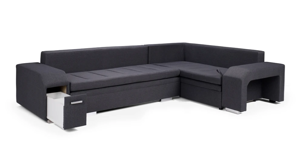 Sedací souprava Alana v sobě spojuje 2 důležité prvky, které nesmí chybět žádné sedací soupravě. Jsou to pohodlí a praktičnost. Praktickou stránkou této sedací soupravy je možnost rozložení pro příležitostné přespání návštěvy a nepostradatelné úložné prostory. Úložný prostor s univerzálním využitím najdete v područi, dále v taburetu, který je možno zasunout do druhé područe a samořejmostí je i úložný prostor v sedací soupravě. Jsou dva a využijete je např. na lůžkoviny. Sedací souprava je celočalouněná, takže je vhodná i k umístění do prostoru. Výplň sedáků tvoří kombinace pružin s kvalitní PUR pěnou. Tato kombinace spolu s velkými opěrnými polštáři, zajišťuje pohodlí. Sedací soupravu nabízíme v levém i pravém provedení v několika trendy barvách. Vyobrazené doplňky a dekorace nejsou v ceně. Vzorek látky, ve které bude sedací souprava dodána, je vyobrazen v doplňkových fotografiích.