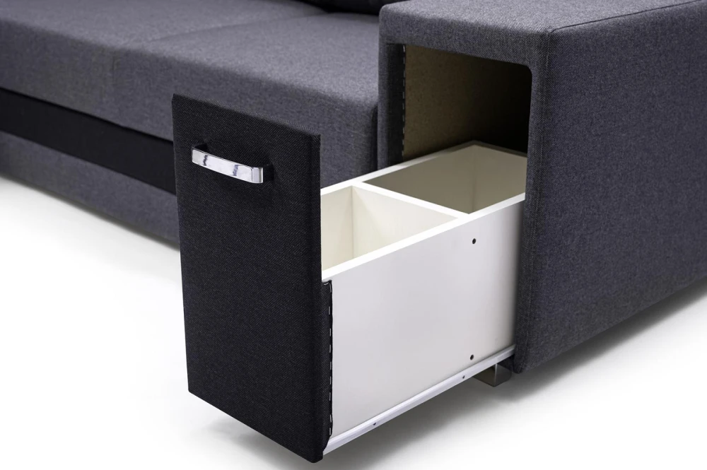 Sedací souprava Andy 2, je ideálním spojením pohodlí a moderního designu. Sedací souprava je potažena kvalitní látkou a je celočalouněná, takže ji můžete umístit i do prostoru. Výplň sedáku tvoří vlnité pružiny v kombinaci s kvalitní pěnou T-30. Toto spojení zaručuje velmi pohodlné sezení. Praktickou stránkou je možnost rozložení k příležitostnému přespání Vaší návštěvy. Samozřejmostí je i úložný prostor, který můžete využít třeba na lůžkoviny. Další úložné prostory najdete v područích a je jen na Vás jaké jim najdete využtití. Sedací soupravu nabízíme v levém i pravém provedení. Vyobrazené doplňky a dekorace nejsou v ceně.