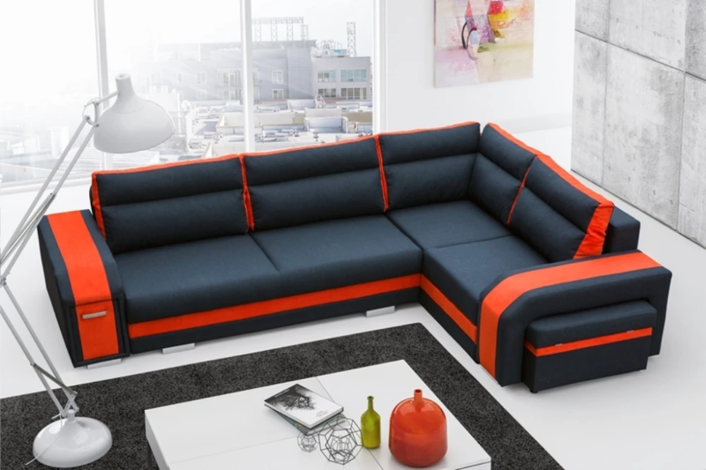 Sedací souprava Association osloví každého, kdo preferuje moderní vzhled a zároveň pohodlí a praktičnost. Sedací souprava je rozkládací a má praktický úložný prostor na lůžkoviny. Další úložný prostor najdete v područi, kde je důmyslně ukrytý bar a v taburetu, který je v druhé područi. Výplň sedáků tvoří kombinace pružin faliste s kvalitní PUR pěnou. Jednoduchým rozkladem pomocí automatu vznikne lůžko vhodné k příležitostnému spaní. Návod na rozložení můžete shlédnout v krátkém gifu, který najdete v doplňkových fotografiích, kde také najdete fotografii s detailními rozměry. Sedací soupravu nabízíme v kvalitní potahové látce se zajímavým lemováním, a to v několika barevných provedeních. Sedací soupravu nabízíme v levém i pravém provedení, nebo také v prodedení do U. Vyobrazené dekorace nejsou v ceně.