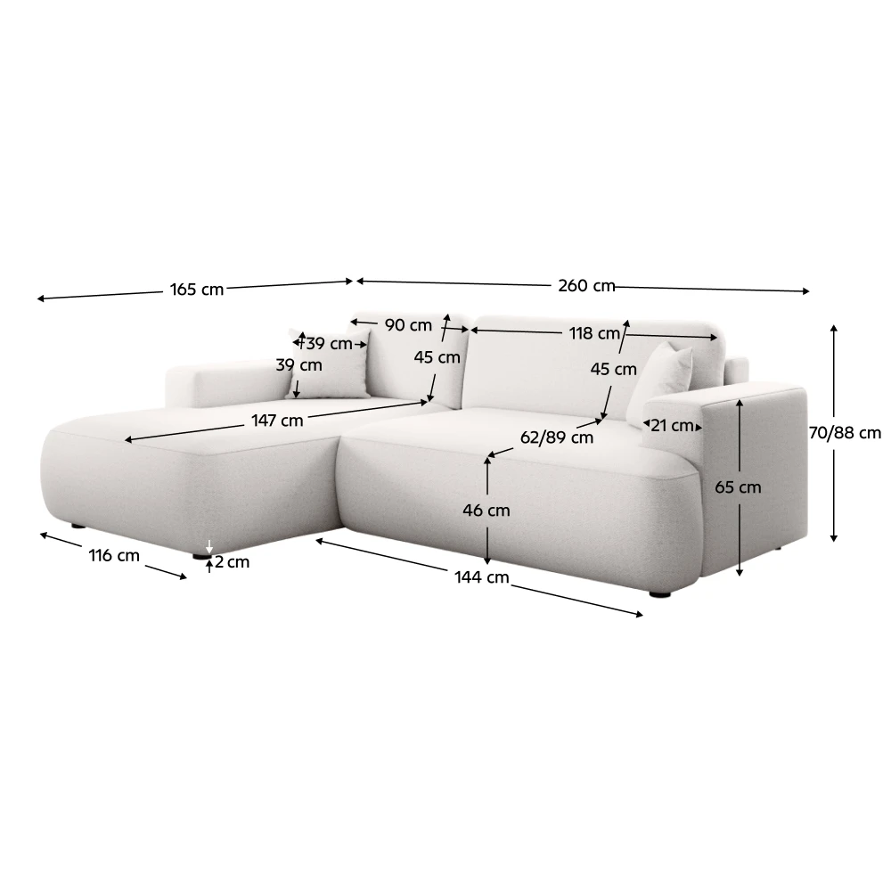 Rozměry (ŠxHxV): 260x165x70/88 cm