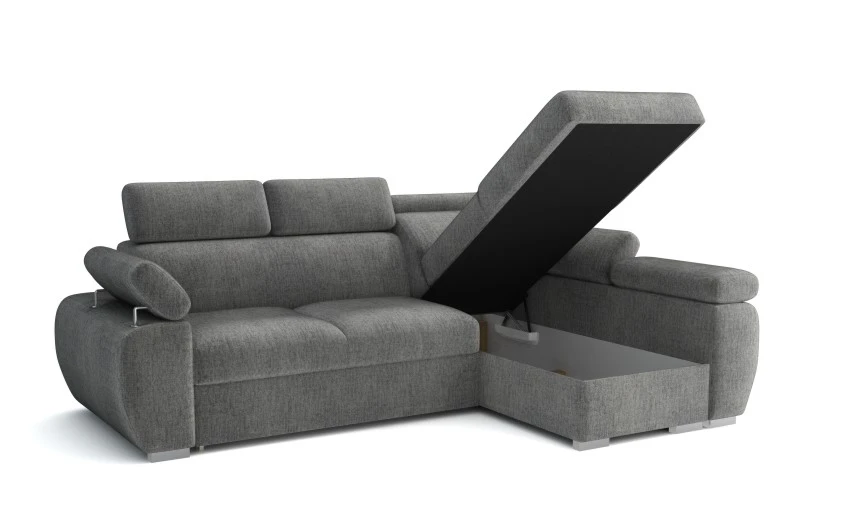 Sedací souprava Bodie se stane příjemným centrem odpočinku, nebo setkání s rodinou a přáteli. Je velmi pohodlná, praktická a nabízí dostatek místa k sezení. Praktickou stránkou sedací soupravy je možnost rozložení k příležitostnému přespání a také nepostradatelný úložný prostor. Pohodlí při sezení zajišťuje výplň sedáků, kterou tvoří kombinace vlnitých pružin s kvalitní PUR pěnou. Při odpočinku, nebo sledování televize Vám zvýší pohodlí polohovací opěrky. Sedací souprava je potažena kvalitní látkou Aragon, která je vyrobena z vysoce kvalitní příze, extrémně měkká a příjemná na dotek. Tato tkanina je odolná před pronikáním vlhkosti a tekutin. Látka se snadno čistí a udržuje v perfektním stavu. Sedací soupravu nabízíme v levém i pravém provedení. Vyobrazené doplňky a dekorace nejsou v ceně. Fotografie sedací soupravy v rozkladu jsou pouze ilustrační. Správný barevný odstín je zobrazen na úvodní fotografii.