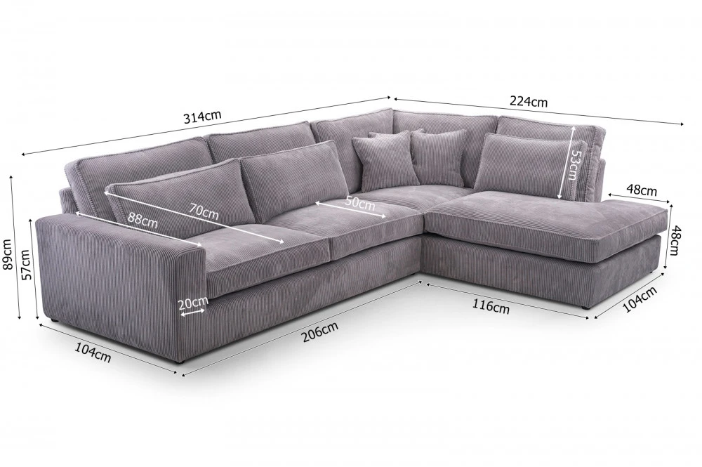 Polštáře jsou velmi pohodlnou součástí sedacích souprav. Jejich velké množství symbolizuje dokonalý relax. Sedací souprava Carny je tedy pro ty, kteří si rádi užijí relax nejen po náročném dni, skvělou volbou. Všechny polštáře jsou volně ložené a můžete je přizpůsobit svému pohodlí. Výplň sedáku tvoří pružiny typu faliste v kombinaci s pěnou T30 a HR 35/45. Sedací souprava je celočalouněná, takže ji můžete umístit do prostoru. Sedací souprava není rozkládací, ale po sejmutí polštářů, vznikne dostatečně velký prostor k občasnému přespání. Cena je uvedena za sedací soupravu včetně polštářů. Vyobrazené dekorace nejsou v ceně. Sedací soupravu nabízíme v levém, nebo pravém provedení. Na úvodní fotografii je vyobrazené LEVÉ provedení.
