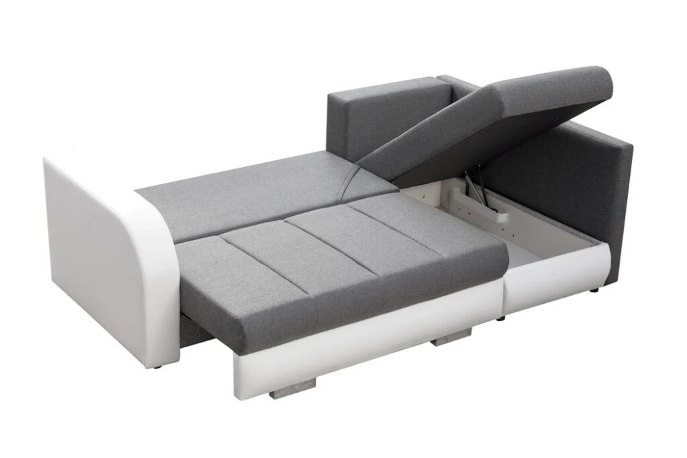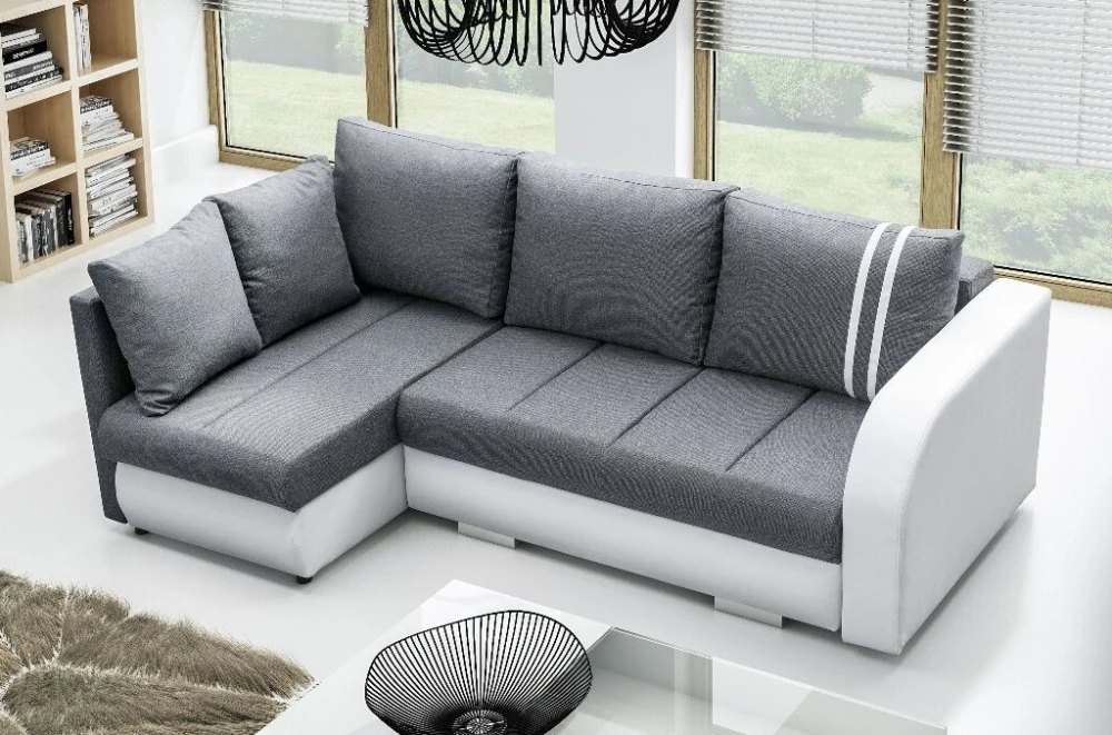 Rohová sedací souprava Citizen, je vzhledem ke svým rozměrům, vhodná do menších pokojů. Sedací souprava je rozkládací a má také 2 praktické úložné prostory. Jednoduchým rozložením vznikne dostatečně velké lůžko vhodné k příležitostnému spaní. Výplň sedáku tvoří kombinace pružin faliste s kvalitní PUR pěnou. Tato kombinace zajistí pohodlné sezení. Sedací souprava je potažena kvalitní látkou v kombinaci s bílou EKO kůží. Tuto sedačku nabízíme v několika barevných variantách. V ceně sedací soupravy je 5 opěrných polštářů. Ostatní vyobrazené dekorace nejsou v ceně.
