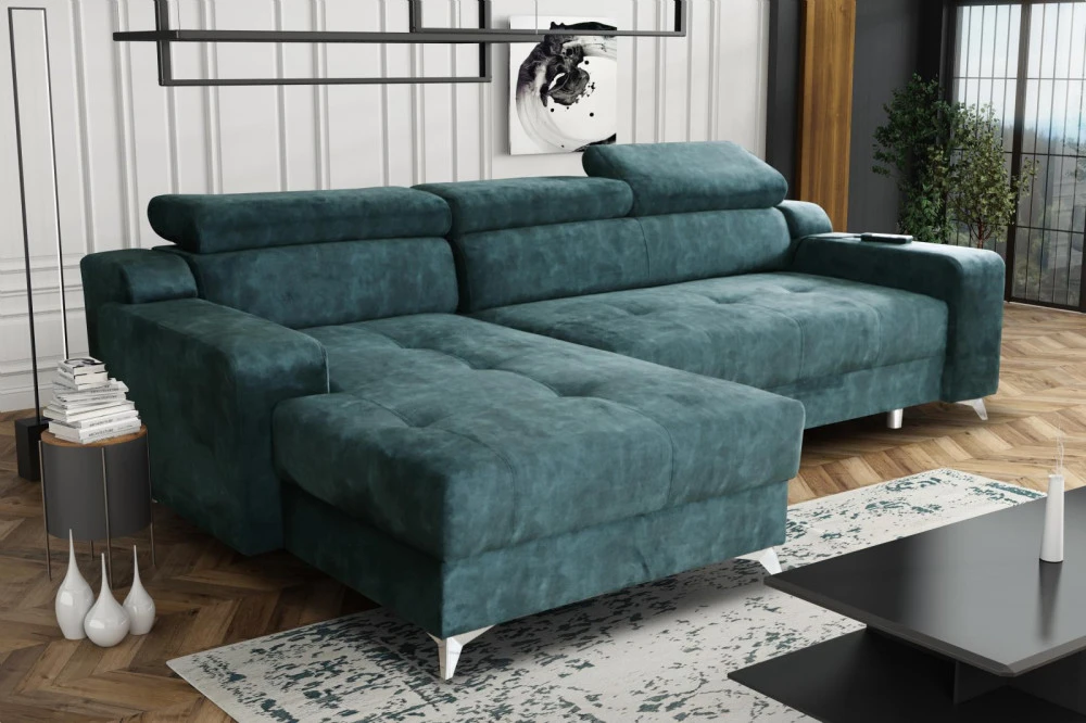 Sedací souprava Darina osloví každého, kdo preferuje moderní vzhled a zároveň pohodlí a praktičnost. Je potažena kvalitní potahovou látkou s elegantním prošitím na sedací části. Naprostou novinkou u této sedací soupravy je elektrický rozklad. Po stisknutí ovládacího tlačítka se vysune sedací část do polohy pro spaní. Má také velmi praktický úložný prostor, který můžete využít např., na lůžkoviny. Pohodlí při sezení zajišťuje výplň sedáků, kterou tvoří kombinace pružin faliste s kvalitní PUR pěnou. Komfort a pohodlí při odpočinku zvyšuje polohovací opěrka hlavy. Sedací soupravu nabízíme v levém i pravém provedení. Vyobrazené dekorace a doplňky nejsou v ceně sedací soupravy. Fotografie sedací soupravy v rozkladu jsou pouze ilustrační, správný odstín je zobrazen na úvodní fotografii.