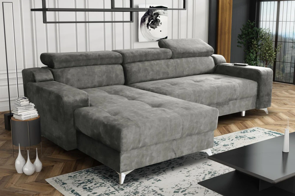 Sedací souprava Darina osloví každého, kdo preferuje moderní vzhled a zároveň pohodlí a praktičnost. Je potažena kvalitní potahovou látkou s elegantním prošitím na sedací části. Naprostou novinkou u této sedací soupravy je elektrický rozklad. Po stisknutí ovládacího tlačítka se vysune sedací část do polohy pro spaní. Má také velmi praktický úložný prostor, který můžete využít např., na lůžkoviny. Pohodlí při sezení zajišťuje výplň sedáků, kterou tvoří kombinace pružin faliste s kvalitní PUR pěnou. Komfort a pohodlí při odpočinku zvyšuje polohovací opěrka hlavy. Sedací soupravu nabízíme v levém i pravém provedení. Vyobrazené dekorace a doplňky nejsou v ceně sedací soupravy.Fotografie sedací soupravy v rozkladu jsou pouze ilustrační, správný odstín je zobrazen na úvodní fotografii.