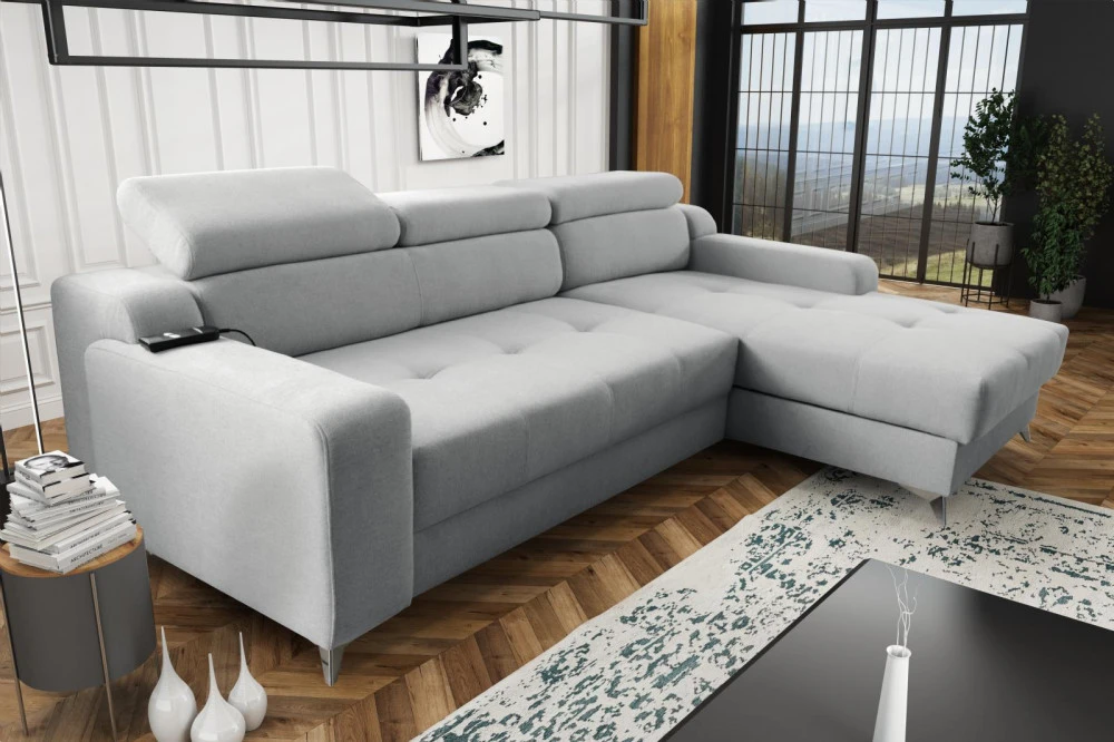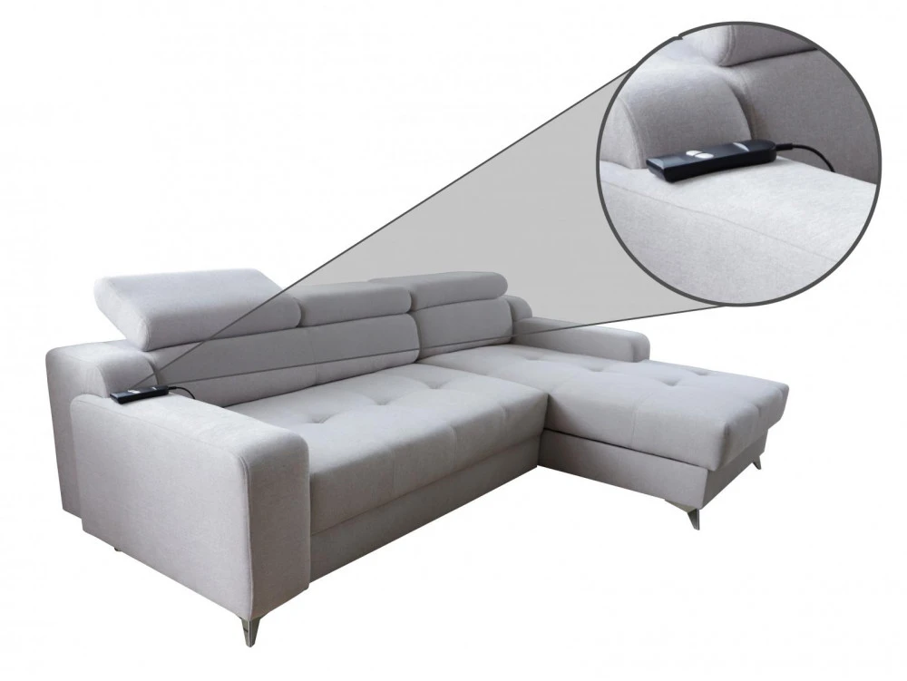 Sedací souprava Darina osloví každého, kdo preferuje moderní vzhled a zároveň pohodlí a praktičnost. Je potažena kvalitní potahovou látkou s elegantním prošitím na sedací části. Naprostou novinkou u této sedací soupravy je elektrický rozklad. Po stisknutí ovládacího tlačítka se vysune sedací část do polohy pro spaní. Má také velmi praktický úložný prostor, který můžete využít např., na lůžkoviny. Pohodlí při sezení zajišťuje výplň sedáků, kterou tvoří kombinace pružin faliste s kvalitní PUR pěnou. Komfort a pohodlí při odpočinku zvyšuje polohovací opěrka hlavy. Sedací soupravu nabízíme v levém i pravém provedení. Vyobrazené dekorace a doplňky nejsou v ceně sedací soupravy.