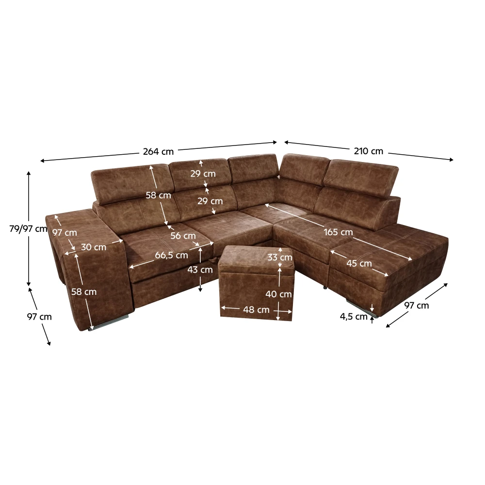 Rozměry (ŠxHxV): 264x210x79/97 cm