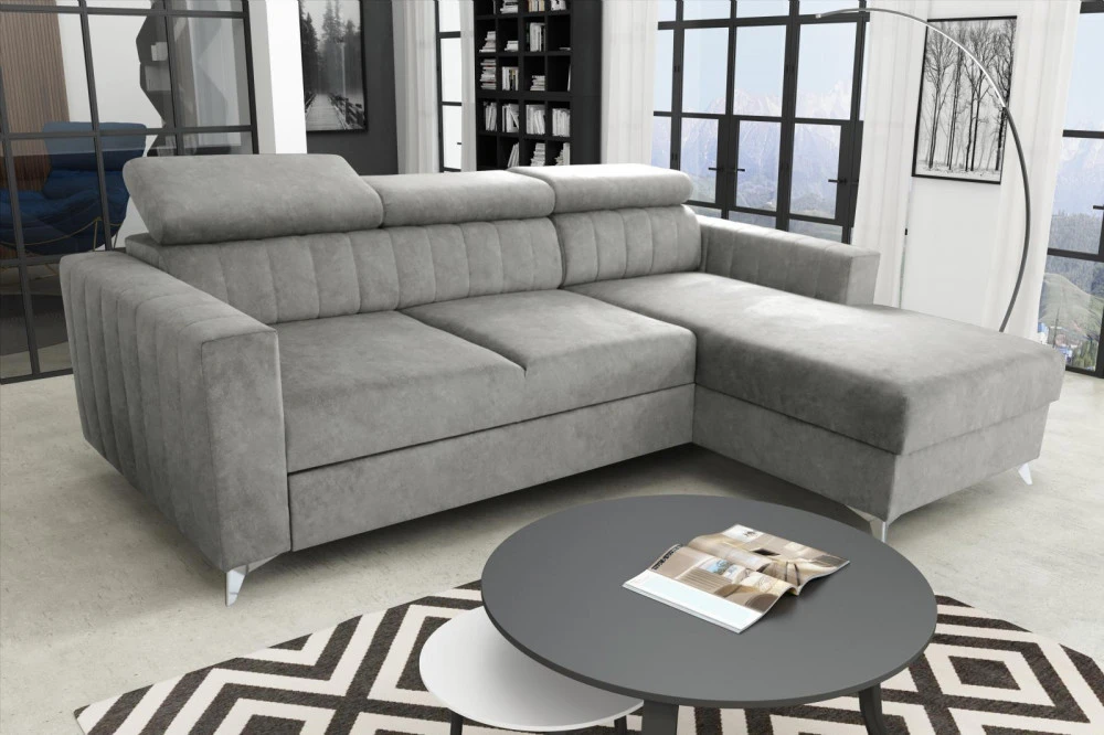 Sedací souprava Mildred osloví každého, kdo preferuje moderní vzhled a zároveň pohodlí a praktičnost. Je potažena kvalitní potahovou látkou s kontrastním prošitím. Sedací souprava je velmi pohodlná a dostatečně velká na posezení s přáteli, nebo rodinou. Pro případ, že se návštěva zdrží přes noc, je sedací souprava vybavena rozkladem, díky kterému sedací soupravu jednoduše přeměníte v prostorné lůžko. Sedací souprava má praktický úložný prostor, který můžete využít např., na lůžkoviny. Pohodlí při sezení zajišťuje výplň sedáků, kterou tvoří kombinace pružin faliste s kvalitní PUR pěnou. Komfort a pohodlí při odpočinku zvyšuje polohovací opěrka hlavy. Sedací soupravu nabízíme v levém i pravém provedení.