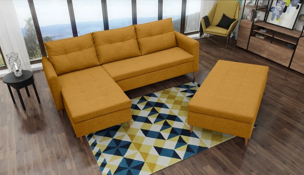Rohová sedací souprava Areon, je vhodná do všech moderních interiérů. Pohodlnost sezení zajišťuje kombinace pružin s kvalitní PUR pěnou a 3 velké opěrné polštáře. V ceně sedací soupravy je velký taburet s úložným prostorem, který můžete využít jako další místo k sezení, nebo ho v případě potřeby můžete přistavit k sedací soupravě a vytvořit tak prostor pro občasné přespání Vaší návštěvy. Sedací soupravu nabízíme v kvalitní potahové látce v několika barevných provedeních. Záda sedací soupravy jsou čalouněná, takže je vhodná i pro umístění do prostoru. Úvodní fotografie je ilustrační. Vzorek látky, ve které bude sedací souprava dodána, je vyobrazen v doplňkových fotografiích. Vyobrazené doplňky a dekorace nejsou v ceně.