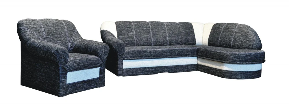 Velmi praktická sedací souprava Sandra 240x185 cm je vhodná do menších prostorů. Pohodlné sezení zaručují pružiny bonel s PUR pěnou. Jednoduchým rozkladem vznikne lůžko 190x125 cm vhodné k příležitostnému spaní. Sedací souprava má praktický úložný prostor na lůžkoviny. K sedací soupravě je možné také dokoupit křeslo. Celkový rozměr sedací soupravy je 240x185 cm.