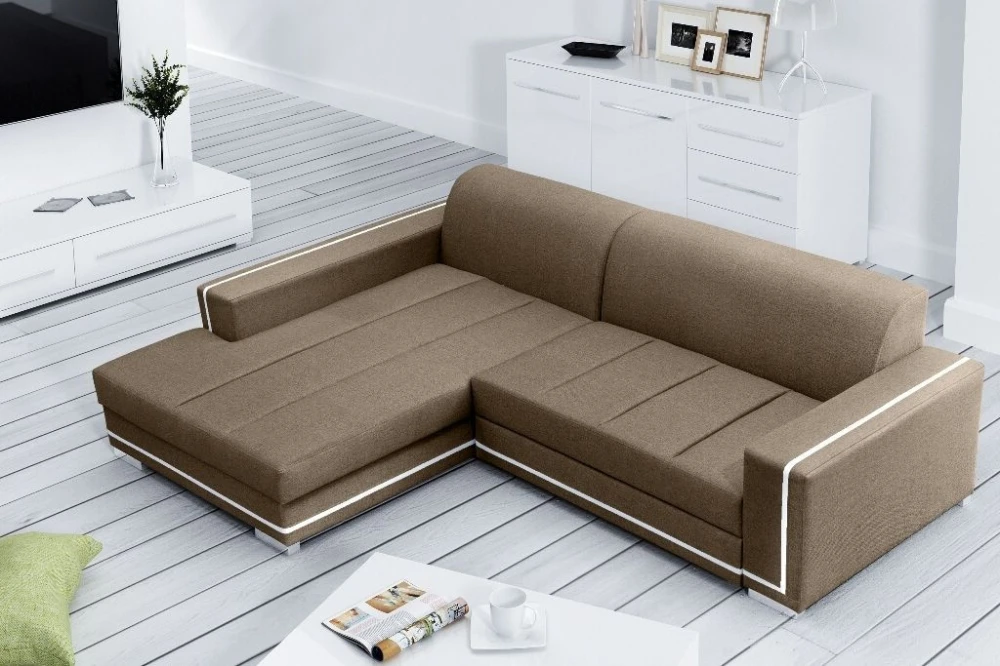 Rohová sedací souprava Tamarin je díky své jednoduché linii vhodná do každého interiéru. Zajímavým prvkem je neobvyklé prošití sedacích částí a bílý lemující proužek, který sedačce dodává nádech elegance. Sedací souprava je rozkládácí a má také praktický úložný prostor. Výplň sedáku tvoří kombinace pružin faliste a kvalitní PUR pěny. Tuto sedačku nabízíme v několika barevných variantách. Vyobrazené dekorace nejsou v ceně.