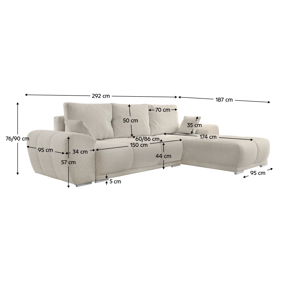 Rozměry (ŠxHxV): 292x187x76/90 cm