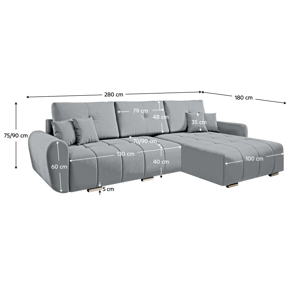 Rozměry (ŠxHxV): 280x180x75/90 cm