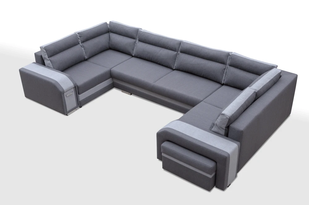 Sedací souprava Association ve tvaru U, osloví každého, kdo preferuje moderní vzhled a zároveň pohodlí a praktičnost. Sedací souprava je velmi pohodlná a dostatečně velká na posezení s přáteli, nebo rodinou. Pro případ, že se návštěva zdrží přes noc, je sedací souprava vybavena rozkladem. Pomocí automatu jednoduše sedací sopuravu přeměníte v prostorné lůžko. Sedací souprava má 3 praktické úložné prostory a další úložný prostor najdete v područi, kde je důmyslně ukrytý bar a také v taburetu. Výplň sedáků tvoří kombinace pružin faliste s kvalitní PUR pěnou. Návod na rozložení můžete shlédnout v krátkém gifu, který najdete v doplňkových fotografiích, kde také najdete fotografii s detailními rozměry. Sedací soupravu nabízíme v kvalitní potahové látce se zajímavým lemováním, a to v několika barevných provedeních. Sedací soupravu nabízíme v levém i pravém provedení, nebo také v prodedení do L. Sedací souprava bude dodána v kombinaci potahových látek, která je vyobrazena na úvodní fotografii. Vyobrazené dekorace nejsou v ceně.