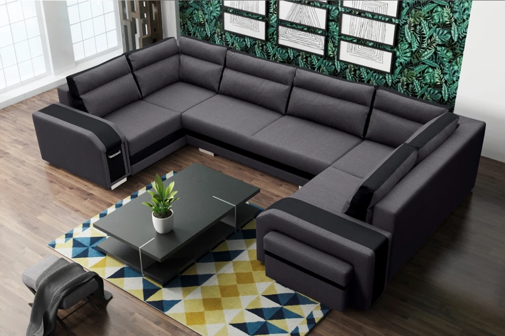 Sedací souprava Association ve tvaru U, osloví každého, kdo preferuje moderní vzhled a zároveň pohodlí a praktičnost. Sedací souprava je velmi pohodlná a dostatečně velká na posezení s přáteli, nebo rodinou. Pro případ, že se návštěva zdrží přes noc, je sedací souprava vybavena rozkladem. Pomocí automatu jednoduše sedací sopuravu přeměníte v prostorné lůžko. Sedací souprava má 3 praktické úložné prostory a další úložný prostor najdete v područi, kde je důmyslně ukrytý bar a také v taburetu. Výplň sedáků tvoří kombinace pružin faliste s kvalitní PUR pěnou. Návod na rozložení můžete shlédnout v krátkém gifu, který najdete v doplňkových fotografiích, kde také najdete fotografii s detailními rozměry. Sedací soupravu nabízíme v kvalitní potahové látce se zajímavým lemováním, a to v několika barevných provedeních. Sedací soupravu nabízíme v levém i pravém provedení, nebo také v prodedení do L. Sedací souprava bude dodána v kombinaci potahových látek, která je vyobrazena na úvodní fotografii. Vyobrazené dekorace nejsou v ceně.