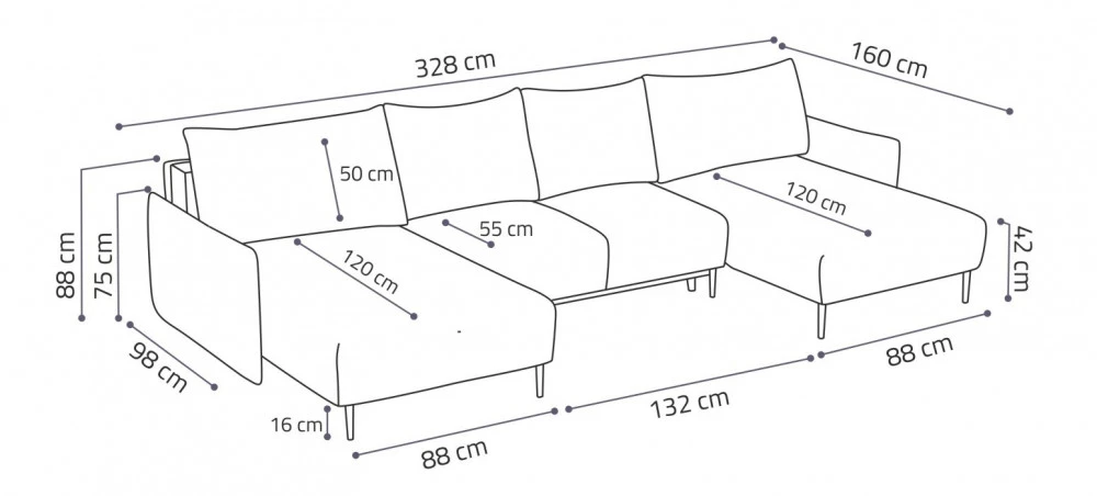 Sedací souprava Santino je vyrobena v jednoduchém elegantním designu, který se hodí do všech interiérů. Sedací souprava je rozkládací, jednoduchým rozložením vytvoříte dostatečně velké lůžko k příležitostnému přespání Vaší návštěvy. Samozřejmostí je i praktický úložný prostor, který můžete využít např. na lůžkoviny. Sedací souprava je potažena kvalitní látkou Aragon, která je vyrobena z vysoce kvalitní příze, je extrémně měkká a příjemná na dotek. Látka je odolná před pronikáním vlhkosti a tekutin, snadno se čistí a udržuje v perfektním stavu. Výplň sedáků tvoří kombinace vlnitých pružin s kvalitní HR pěnou. Pro pohodlí při sezení a odpočinku, je sedací souprava vybavena 4 objemnými polštáři. Správná barva potahové látky je zobrazena na první a druhé fotografii. Ostatní fotografie jsou pouze ilustrační.