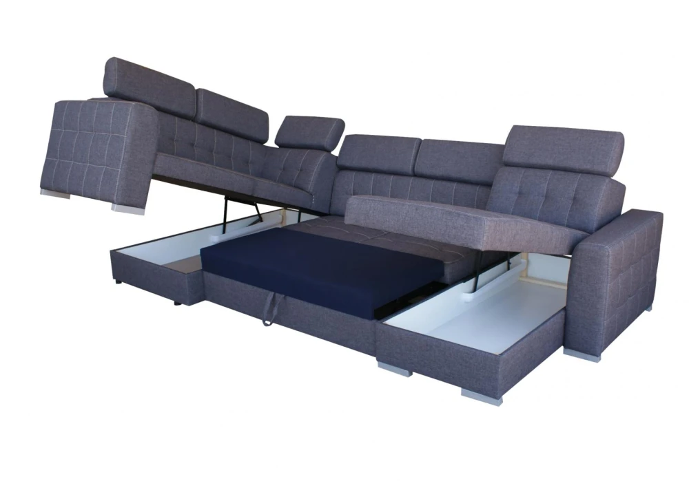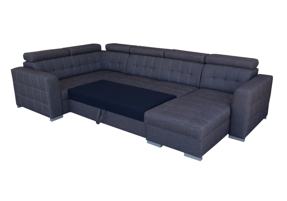 Sedací souprava Zara ve tvaru U, osloví každého, kdo preferuje moderní vzhled a zároveň pohodlí a praktičnost. Je potažena kvalitní potahovou látkou s kontrastním prošitím. Sedací souprava je velmi pohodlná a dostatečně velká na posezení s přáteli, nebo rodinou. Pro případ, že se návštěva zdrží přes noc, je sedací souprava vybavena rozkladem, díky kterému sedací soupravu jednoduše přeměníte v prostorné lůžko. Sedací souprava má 2 praktické úložné prostory, které můžete využít např., na lůžkoviny. Pohodlí při sezení zajišťuje výplň sedáků, kterou tvoří kombinace pružin faliste s kvalitní PUR pěnou. Komfort a pohodlí při odpočinku zvyšuje polohovací opěrka hlavy. Sedací soupravu nabízíme v levém i pravém provedení, nebo také v provedení do L. K sedací soupravě je možno dokoupit křeslo a malý nebo velký taburet.