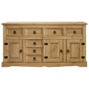 materiál masiv borovice voskovaná v medovém odstínu 3 dvířka, 1 police, 7 zásuvek, kovové ozdobné úchytky součást sestavy Corona