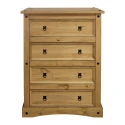 materiál masiv borovice voskovaná v medovém odstínu 4 velké zásuvky, kovové ozdobné úchytky součást sestavy Corona