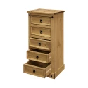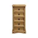 materiál masiv borovice voskovaná v medovém odstínu 5 zásuvek, kovové ozdobné úchytky součást sestavy Corona