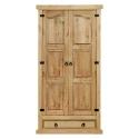 materiál masiv borovice voskovaná v medovém odstínu šatní skříň s šatní tyčí a policí na klobouky ve spodní části velká zásuvka, kovové ozdobné úchytky doporučený nástavec CORONA 16951 součást sestavy Corona