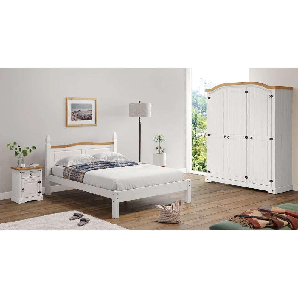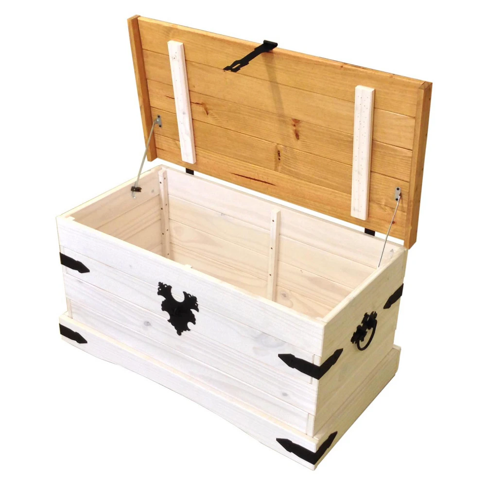 materiál masiv borovice voskovaná v bílém odstínu horní deska masiv borovice voskovaná v medovém odstínu kovové ozdobné úchytky a petlice součást sestavy Corona bílá
