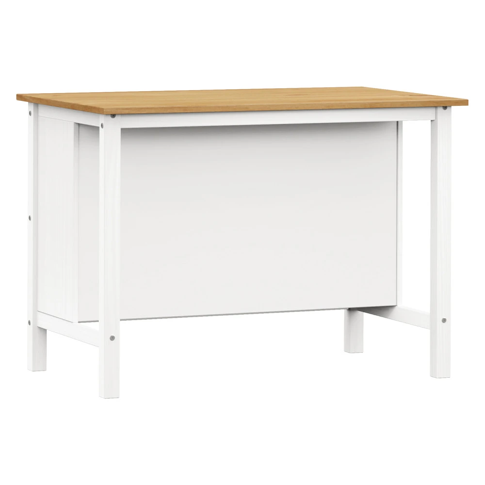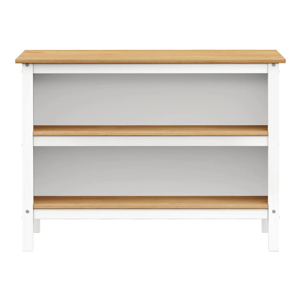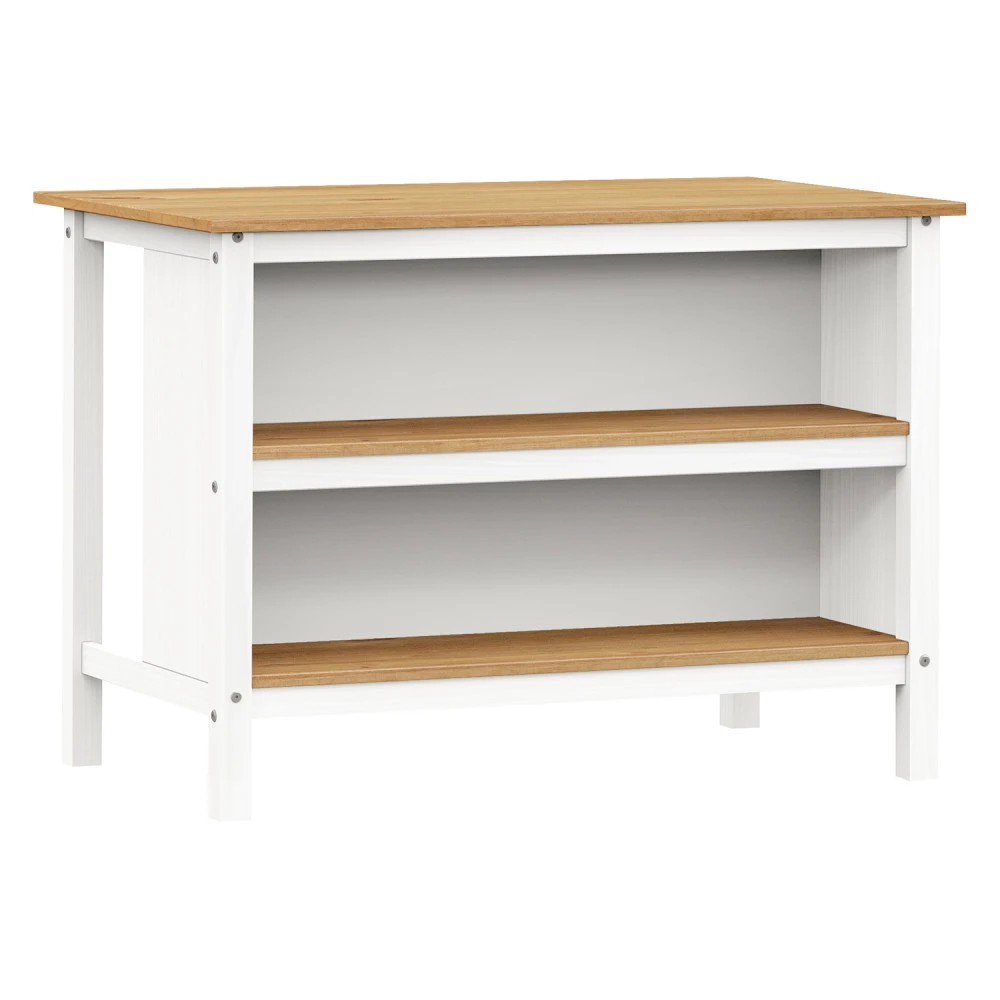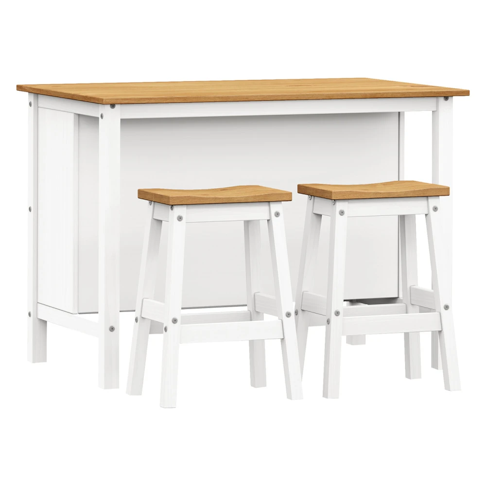 kuchyňský ostrůvek 11001B a 2 barové stoličky 13293B CORONA 2 materiál masiv borovice voskovaná v bílém a medovém odstínu rozměr ostrůvku (š/h/v) 126 × 77 × 91 cm, 1 police rozměr barové stoličky (š/h/v) 44 × 30 × 63 cm součást sestavy Corona 2