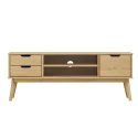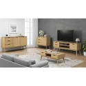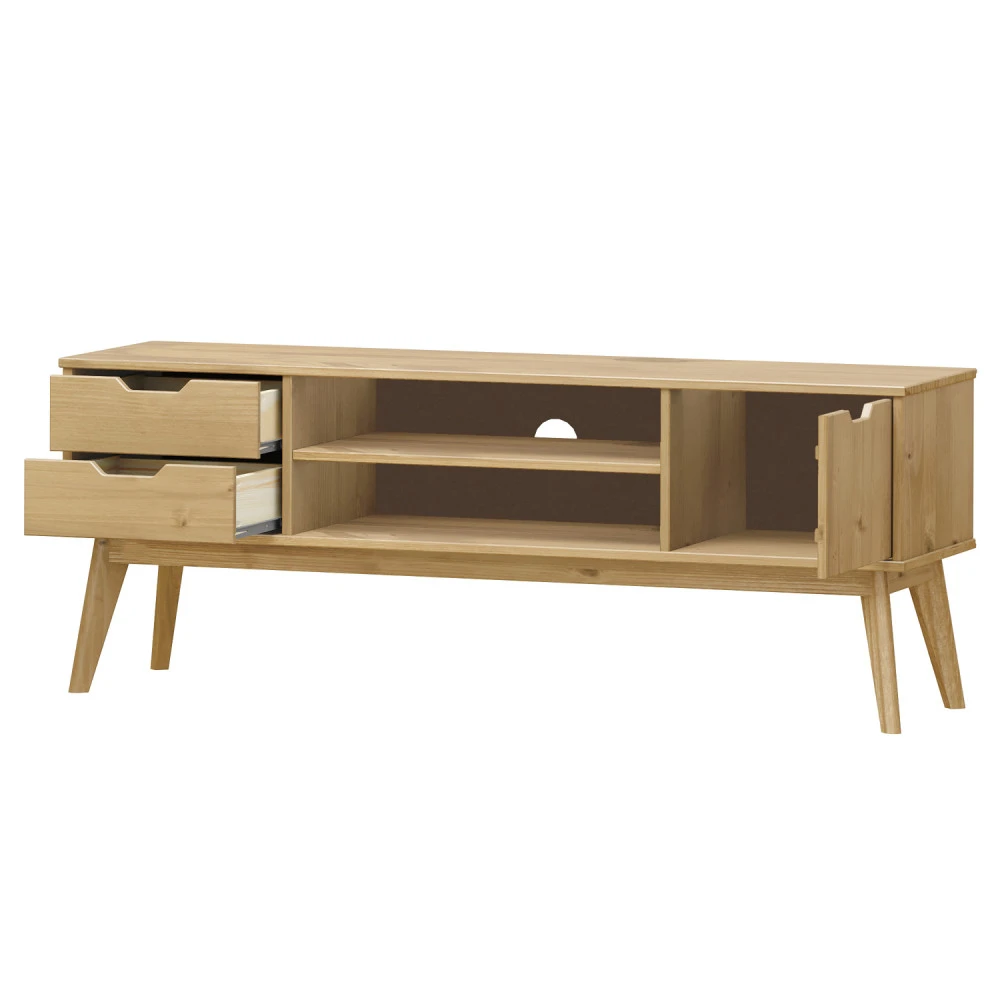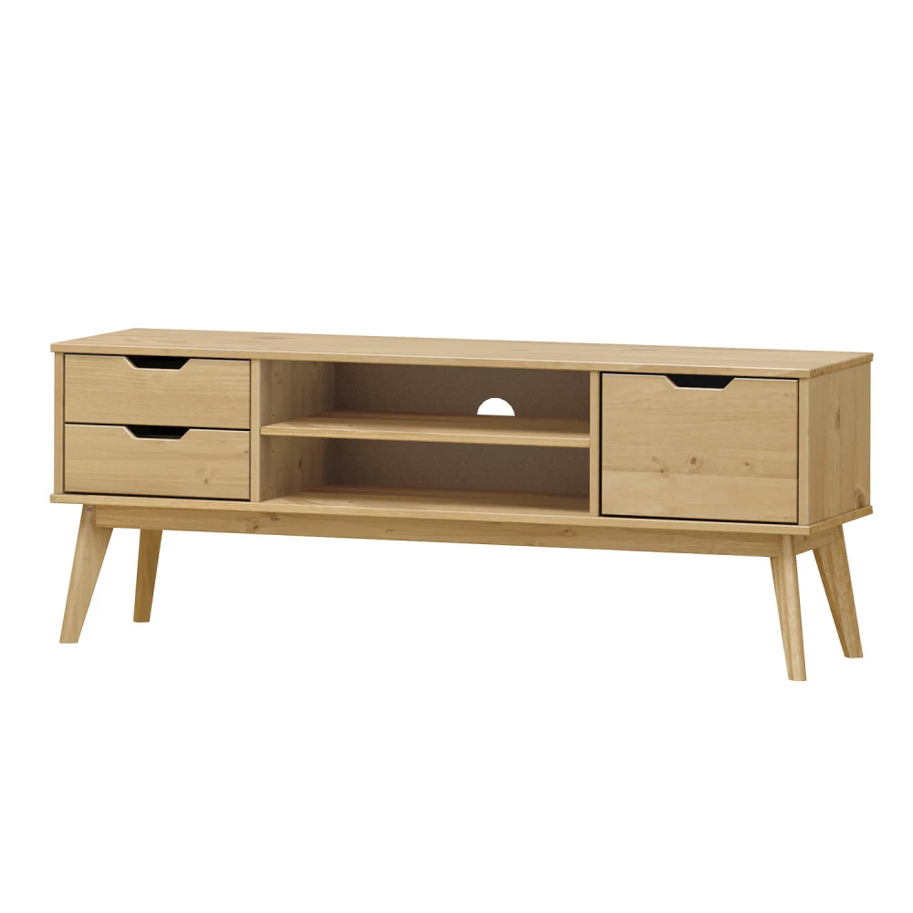 materiál masiv borovice voskovaná v medovém odstínu 2 zásuvky s kovovými pojezdy, 1 dvířka, 1 police otvor na protažení kabelů