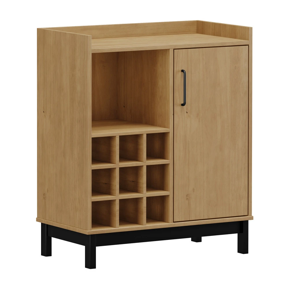 materiál masiv borovice barevné provedení buk, černé nohy ve spodní části levé strany prostor k uložení vínapravá část 1 dvířka, 1 policečerné kovové úchytky