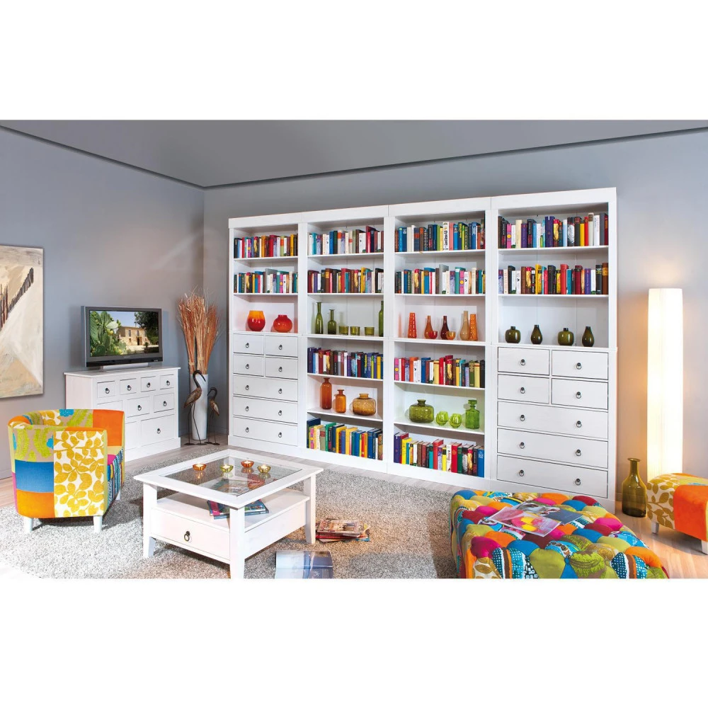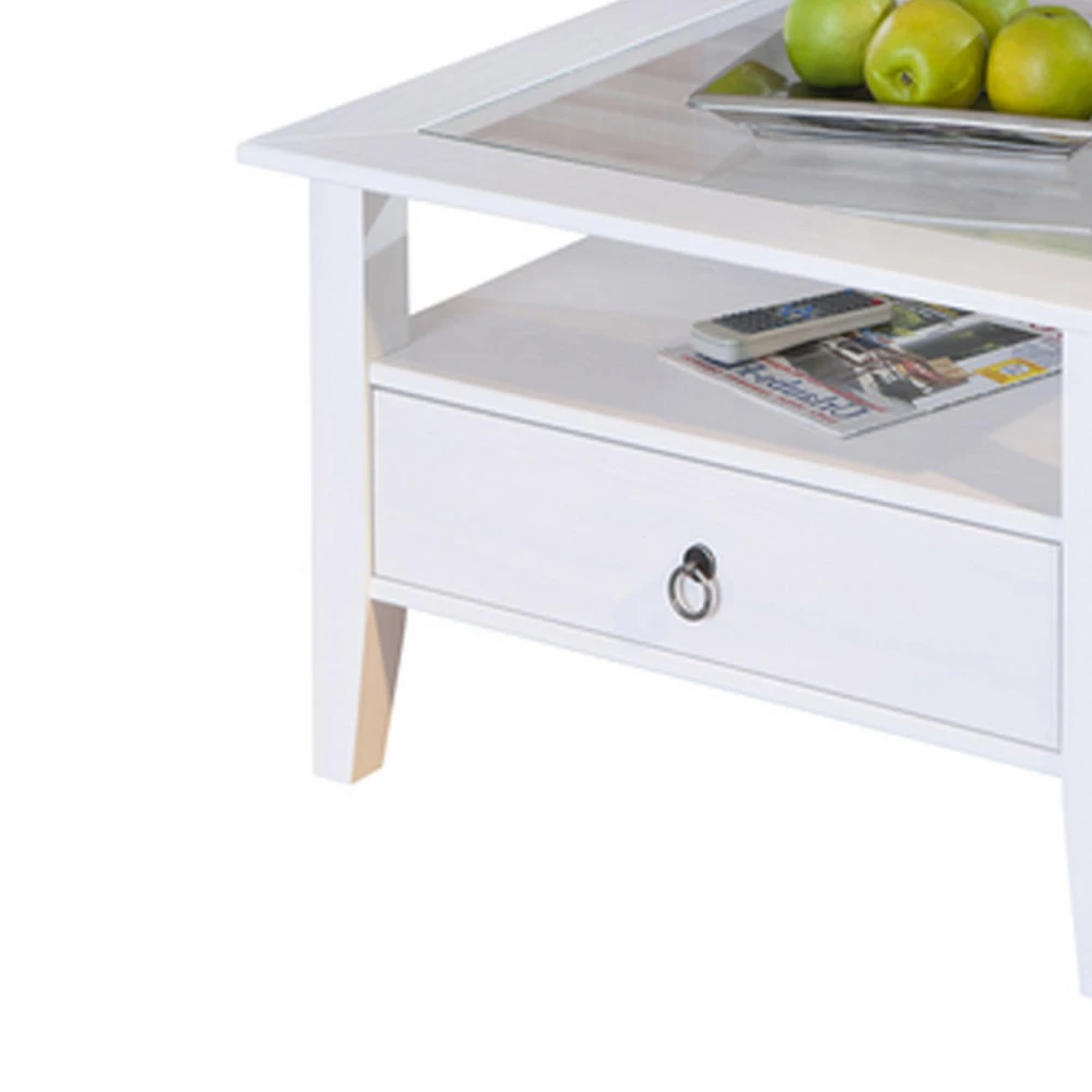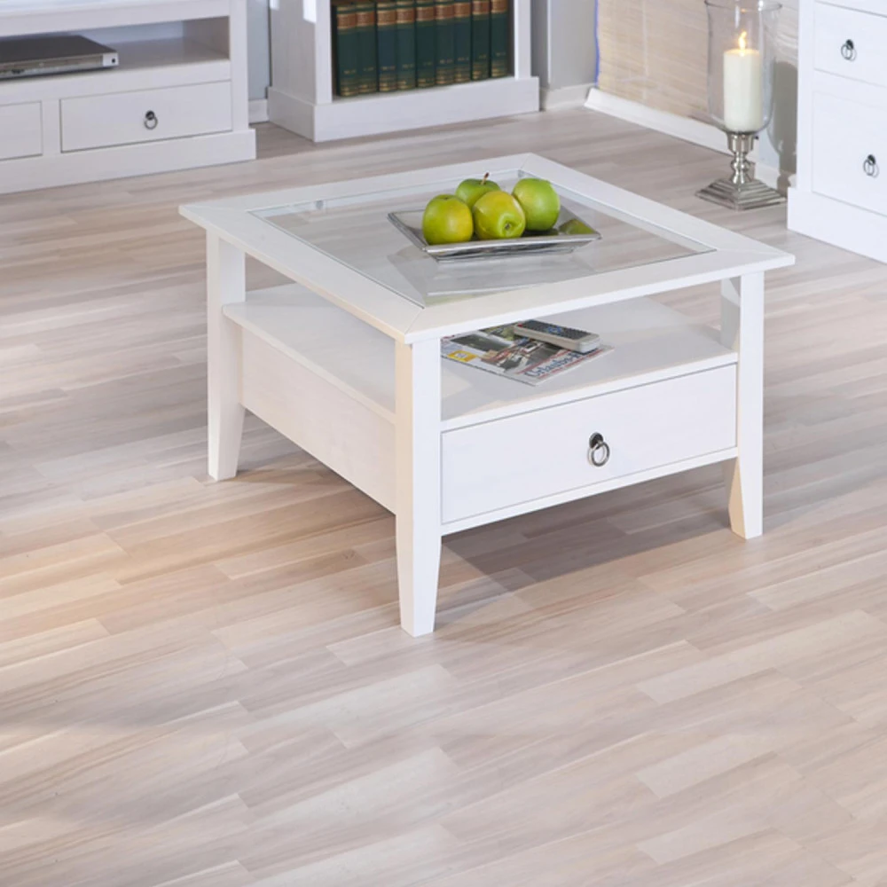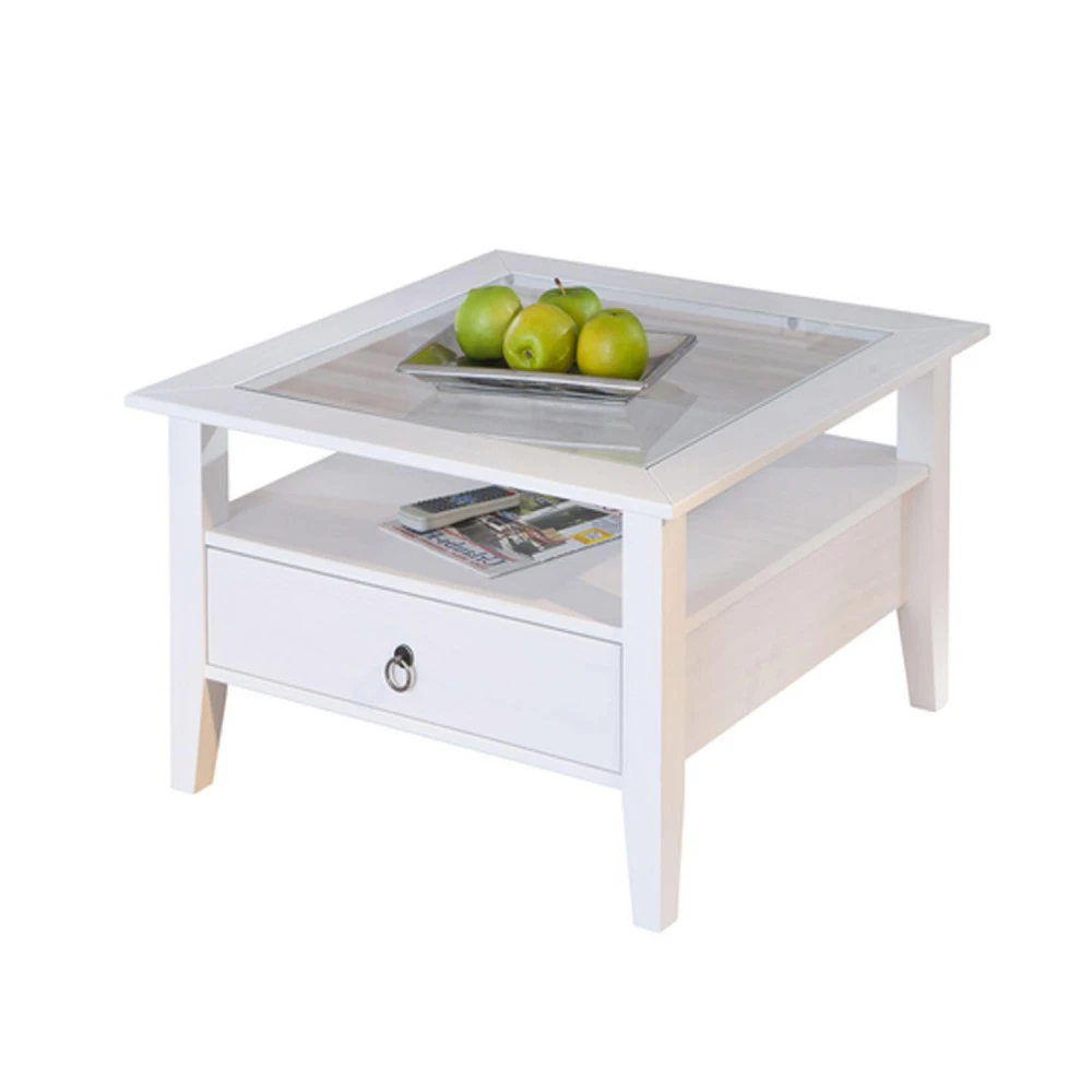 materiál masiv borovice, barevné provedení bílý lak horní deska tvrzené sklo, 1 zásuvka, kovové úchytky součást sestavy Provence