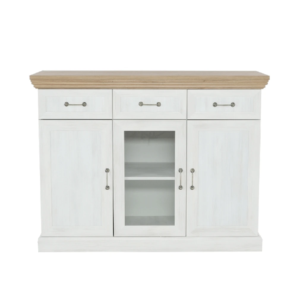 Materiál: korpus DTD laminovaná + ozdobné lišty, kovové úchytky